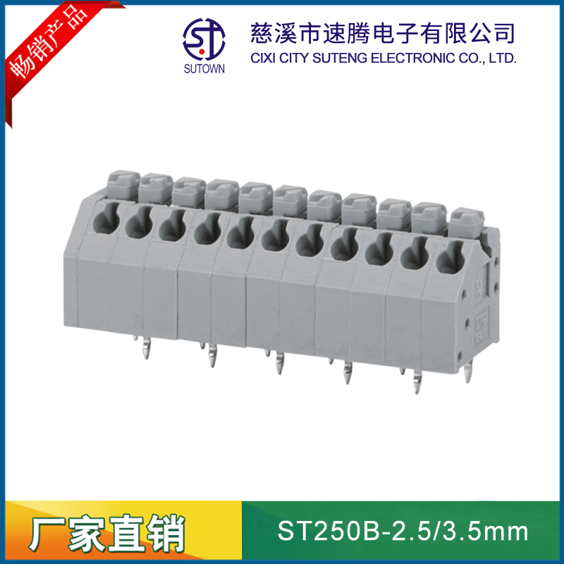 慈溪市速騰電子有限公司,是專業生接線端子生產廠家, 主要產品包話:貫通式接線端子;LED燈具端子;貼片端子;快速接線端子;插拔式接線端子;柵欄式接線端子;PCB接線端子;免螺絲式接線端子;LED電源接線端子;電氣接線端子;各類接線端子臺;歐式插座;撥碼開關;等各類連接器。
